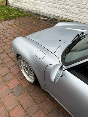 Our car was sold new in Canada and comes with a full service history, including comprehensive documentation. The condition is almost faultless, with only some small chips in the front of the car. The silver paint (Polar Silver metallic) with a black leather interior is in very representable condition. The car is original, except for having a approved Heigo roll cage, 917 style wooden gear knob and Recaro seats (original parts with the car). The car is running the 993 Turbo front bumper. The car has received a recent service and is ready to be enjoyed by the next caretaker.